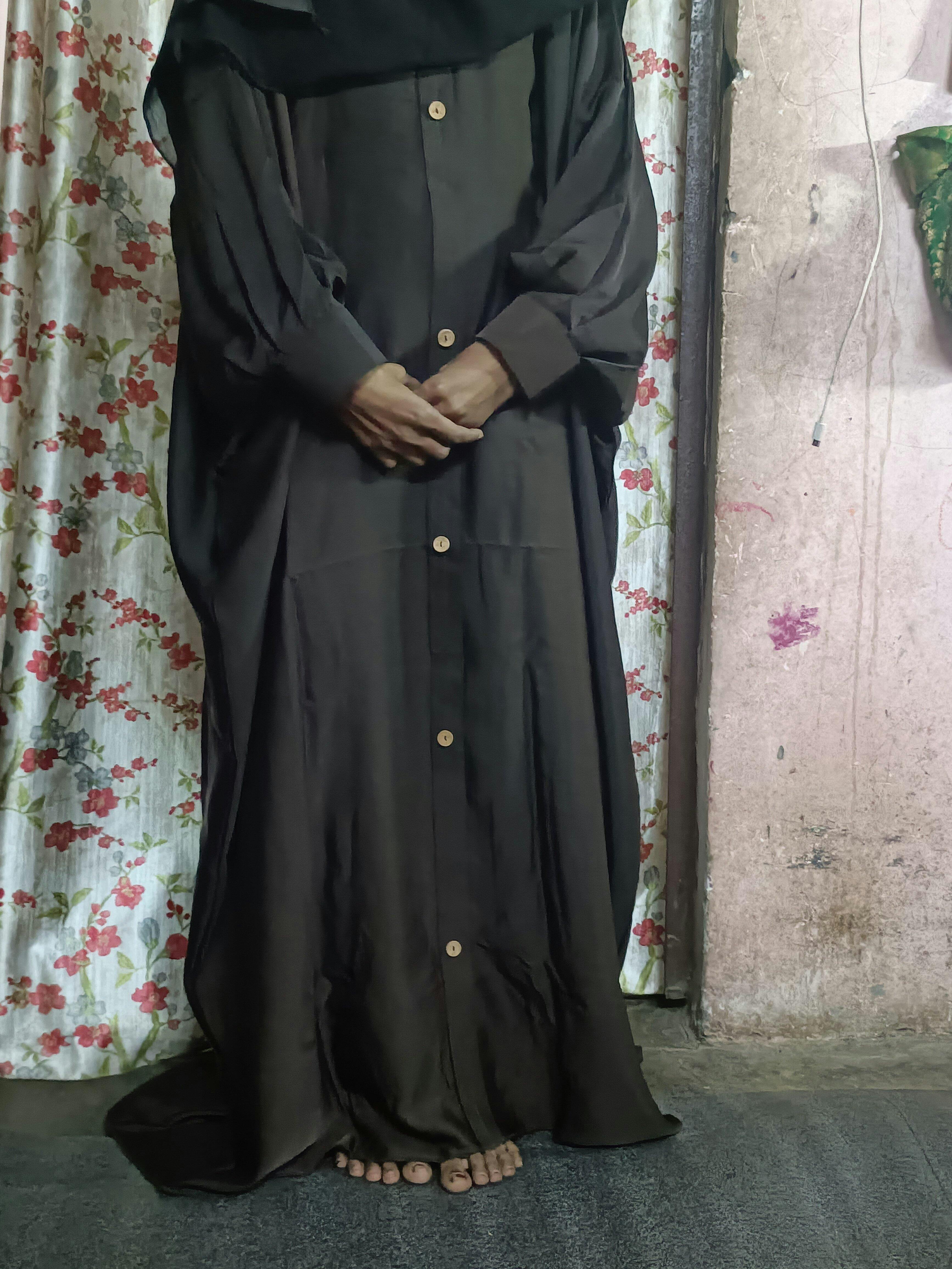 Designed for everyday elegance, this abaya is perfect for daily wear, offering both comfort and style. Made from high-quality imported Nida fabric, it provides a soft, breathable feel ideal for long hours of use. The abaya features a full-size chiffon dupatta and includes a matching single nosepiece for a complete modest look. Enhanced with beautiful button detailing on the front, it adds a touch of sophistication to your daily outfit.